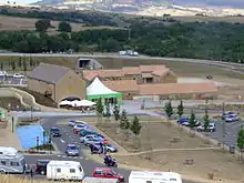 The rest area of Brocuéjouls, named Aire du Viaduc de Millau,[28] is situated just north of the viaduct, and is centred on an old farm building named 'Ferme de Brocuéjouls'.[29] It was inaugurated by the prefect of Aveyron, Chantal Jourdan, on 30 June 2006, after 7 months of works. The farm and its surroundings can accommodate entertainment and tourism promotion activities.[30]