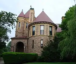 Millicent Library in Fairhaven, Massachusetts was donated to the town by the family of Millicent Gifford Rogers, the youngest daughter of Abbie Gifford and wealthy industrialist Henry Huttleston Rogers. Young Millicent had died of heart failure in 1890 when she was barely seventeen years old. The library was dedicated on January 30, 1893. It was designed by Charles Brigham in the Richardsonian Romanesque style.