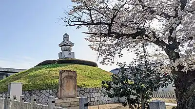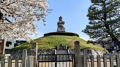 The Mimizuka (耳塚, "Ear Mound", often translated as "Ear Tomb"), an alteration of the original Hanazuka (鼻塚, "Nose Mound")[1][2][3] is a monument in Kyoto, Japan, dedicated to the sliced noses of killed Korean soldiers and civilians[4][5] as well as Ming Chinese troops[6] taken as war trophies during the Japanese invasions of Korea from 1592 to 1598. The monument enshrines the severed noses of at least 38,000 Koreans and over 30,000 Chinese killed during Toyotomi Hideyoshi's invasions.[6][7][8][9] The shrine is located just to the west of Toyokuni Shrine, the Shinto shrine honoring Hideyoshi in Kyoto.