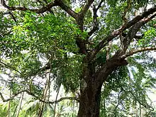 Mimusops elengi is a medium-sized evergreen tree found in tropical forests in South Asia, Southeast Asia and northern Australia. English common names include Spanish cherry,[2] medlar,[2] and bullet wood.[3] Its timber is valuable, the fruit is edible, and it is used in traditional medicine. As the trees give thick shade and flowers emit fragrance, it is a prized collection of gardens.[4]