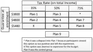 Dauphin residents were eligible for a single treatment that reduced the benefit guarantee by 50 cents for each dollar earned. Also, the Dauphin site had only one plan (Plan 3) and unlike the Winnipeg and rural dispersed sites, any resident of the city could apply.