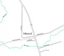 Mineral is an unincorporated community in Athens County, Ohio, United States.[1] Centered on State Route 356, it was established as a coal mining community. It is located on Mud Lick Run, which flows into nearby Hewitt Fork, a tributary of Raccoon Creek. The B&O Railroad once ran through the community, but was abandoned in the 1980s. In recent years, the portion of the old railroad grade going west from the community has become the Moonville Rail-Trail. The King Switch Tunnel on the grade is close to the community. The next larger community is New Marshfield, also unincorporated, to the east in the same township.