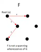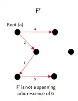 After running the first iteration of this algorithm, we get the F and F is not a spanning arborescence of G, So we run the code |