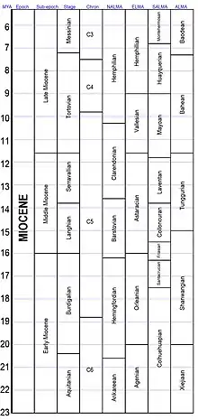 | Middle Miocene | Serravallian | 13.82–11.63 Ma |
