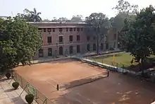 Miranda House was founded in 1948 by the university vice-chancellor, Sir Maurice Gwyer.[4] In a magazine published by him in 1952, he gave three reasons for why the college was called Miranda. His favorite actress was Carmen Miranda, his daughter's name was Miranda, and a character named Miranda in William Shakespeare’s play The Tempest was, according to him, a perfect example of what a lady should be. Its foundation stone was laid by Lady Edwina Mountbatten on 7 March of the same year. Miranda House is built of red bricks on the university campus. Its original design was planned by the architect Walter Sykes George and is architecturally similar to other educational institutions in India founded in the colonial era. As the college grew, several buildings were added.
