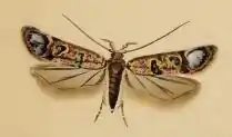 The wingspan is 7-9.5 mm for males and 7.5–9 mm for females. The head is mottled mid-brown. The forewings are mottled brown and light pink-grey with an ochreous tinge near the base.[2] Adults are on wing from June to August.
