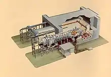 ![]() The mirror fusion test facility during construction in 1983, part of the Yin-Yang magnets can be observed in the background. | |
