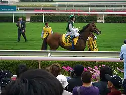 David Mueller selected Miss Andretti from a group of seven weanlings at Ray Cochrane's property. Miss Andretti was originally trained in Western Australia (WA) by David Mueller who had her win nine races in WA, including the G2 WATC Winterbottom Stakes, WATC Prince of Wales Stakes and the WATC Ruabon Stakes, while under his care. Mueller, sold a 75 per cent share in Miss Andretti to Melbourne businessman, Sean Buckley and partner Gabriella Guenzi before she was transferred to trainer Lee Freedman. Her former trainer still continued attending her races, including the trip to England, and collected a percentage of prize money.[3] In Melbourne she won in top company in 10 of her first 13 starts for trainer Lee Freedman.