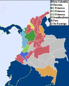 | Guajira | Cindy Kohn Cybulkiewicz | 21 | 167 cm (5 ft 5+1⁄2 in) | Maicao[10] |