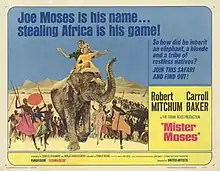 Mister Moses is a 1965 American adventure film about a con man blackmailed into persuading an entire African village into relocating for their own safety. It was directed by Ronald Neame and stars Robert Mitchum and Carroll Baker. The film was based on the 1961 novel of the same name by Max Catto. It was filmed on location in Kenya, at Lake Naivasha and the Amboseli National Park.[2]