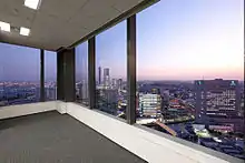 To mark the end of its site redevelopment project outside Yokohama Station, on December 16, 2009, the company completed its construction of Yokohama Dia Building, which was among the largest buildings in the area and had a unique appearance of uniform design and glass curtain walls.[4] Yokohama Dia Building is 31 stories high, 2 stories deep and has a 2-story-high penthouse. It measures 157.7 meters in height (which is the third tallest after Landmark Tower and Queens Tower (A) in Yokohama) and has an area size of 69,977 square meters. The 3rd to 6th floors are for commercial uses and are connected to Yokohama Bay Quarter on each floor, while the 7th to 30th floors are designated rental office space. The architecture was a long-awaited, large-scale office building in Yokohama where development of large office buildings remained rather inactive since the 1990s. It was also an office building of high quality that could compete with those constructed one after another in Tokyo during the 2000s.[5] The building is connected directly to Yokohama Station via a pedestrian deck (Bay Quarter Walkway) that was concurrently constructed and allows people to access the station without getting rained on.
