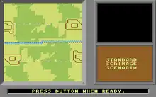Each player is presented with a map of which they control the lower half. Across the center is a line, below which they can set up their units. Each unit which crosses this line gains a point. If the ComCen crosses it, many additional points are scored. A second line is three quarters of the way up the screen; crossing it with units gives additional points. Crossing it with the ComCen is one way to win the game.