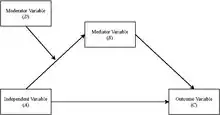 In statistics, moderation and mediation can occur together in the same model.[1] Moderated mediation, also known as conditional indirect effects,[2] occurs when the treatment effect of an independent variable A on an outcome variable C via a mediator variable B differs depending on levels of a moderator variable D. Specifically, either the effect of A on B, and/or the effect of B on C depends on the level of D.
