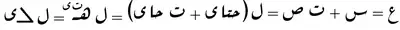 | Summation | ![]() | مجــــ | مجـــ mīm-medial form of jīm is derived from the first two letters of مجموع majmūʿ "sum"; also | |