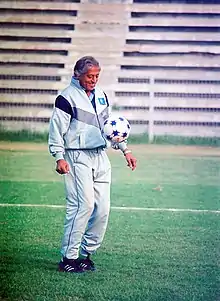 Mohun Bagan struggled to assert dominance in the first half of the 1970s and failed to match their arch-rivals regarding team building. Although they won Rover's Cup from 1970 to 1972, they fared poorly in other major tournaments.[65] Mohun Bagan failed to beat East Bengal even once between 1969 and 1974 and lost to their arch-rivals in Durand Cup and IFA Shield finals multiple times. The lowest point of their decline came in 1975 IFA Shield final when Mohun Bagan lost 5–0 to East Bengal, the biggest margin of defeat in the derby till then. The ignominy surrounding the heavy defeat was that several Mohun Bagan players spent the night holed up on a boat in the Ganges as the supporters laid siege to the club tent.[66] Umakanto Palodhi, an ardent Mohun Bagan fan, committed suicide. He wrote in his suicide note that he will be born as a Mohun Bagan footballer in the next life and will take revenge for that 0–5 defeat.[67] In May 1972, Mohun Bagan toured to newly independent Bangladesh to play exhibition matches, where they defeated Dhaka Mohammedan in their first match, but lost to Shadhin Bangla football team later.[68] Mohun Bagan did recruit a number of young players in 1974 and 1975 so as to steer the team back to success. Subrata Bhattacharya, an indomitable defender, Prasun Banerjee, a dictating midfielder, and Narayanswami Ulaganathan, a swift winger, joined in 1974 at a young age. In 1975, Compton Dutta, an impeccable right-back, and Dilip Palit, a combative full-back, joined the team. In 1976 the wheel had finally turned as Mohun Bagan assembled their best team in years under the helm of Chandra Madhab Roy. Along with the strong core group that joined in 1974 and 1975, the club added a host of players from their two local rivals, including Mohammed Habib, his brother Mohammed Akbar and Subhash Bhowmick. Habib was an extremely tactful attacker, Akbar was a prolific striker, and Bhowmik was one of the finest wingers. Young winger Bidesh Bose also donned the Green-Maroon jersey for the first time and would soon make his mark with his darting runs along the touchline. Pradeep Chowdhury arrived at the club to partner with Subrata in the defense. Mohun Bagan’s most important investment was in the coaching post, where Prasun's brother, P.K. Banerjee was employed after his immensely successful spell at East Bengal. Under him, 1976 turned into one of the best years in the club’s history when Mohun Bagan won their first CFL and IFA Shield titles since 1969 and added Rover's Cup to their success. In 1976, a hattrick of Bordoloi Trophy was completed along with a victory in Darjeeling Gold Cup. Most significantly, Mohun Bagan ended a seven-year wait to win the Derby in 1976 with a 17 seconds header from Akbar, assisted by Ulanganathan. Along with Shyam Thapa, other iconic names like Sudhir Karmakar and Gautam Sarkar, who were affectionately called "Indian Beckenbauer" for his snatching abilities in the midfield, also joined Mohun Bagan in the following year. Shibaji Banerjee played his first senior game for the club in 1977 after being a part of the youth teams. With one of the best squads in its history, Mohun Bagan suffered a shocking defeat of 1–0 against ITI team in the inaugural Federation Cup, which became the most prestigious title in the country, and also lost the first Derby of that year. But they successfully captured Bordoloi Trophy by thrashing Mohammedan with 4–0 and also became the first club to win the "triple crown" – the IFA Shield, the Durand Cup, and the Rover's Cup, in that year and as per club traditions, they invited East Bengal for dinner.[65][69]