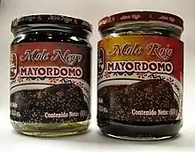 A number of mole powders and pastes can be prepared ahead of time and sold, such as mole poblano, mole negro, and mole colorado. Many markets in Mexico, as well as grocery stores, supermarkets, and online retailers internationally, sell mole pastes and powders in packages or by the kilogram.[19][20]