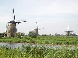 Molenwaard can be characterized as a landscape of polders existing of vast pastures traversed by ditches and canals, like the Groote- of Achterwaterschap, and the Ammersche Boezem. In the outermost northwest one can find the famous windmills of Kinderdijk. About 1.5 m below sea level, the municipality is bordered by the Lek river in the north and briefly the Noord river in the west. On its area flows the Graafstroom or the Alblas.