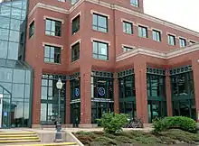 After the fire, the Moncton Public Library was moved to Kirby House, located at 51 Highfield Street, where it was officially reopened on January 20, 1949. This building was demolished in October 1961 in order to build a new one for the library on the same land; it was inaugurated on September 22, 1962.[7] The Moncton Public Library is currently located in the Blue Cross Centre where it has been since 1989. The library's previous location on Highfield Street was renovated to accommodate office space in 1991.[8]