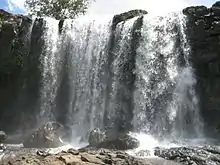 • Bou Sra Waterfall. Located at Pich Chinda District, 43 kilometers from Senmonorom town, Bou Sra (or Busra) is the largest waterfall, made famous by a popular Khmer song in Mondulkiri. It is a three-tiered natural waterfall with only the first two tiers accessible to public view. There is a zipline run by local hotel Mayura Hills Resort that runs over the waterfall.[5]