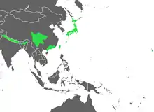 Monosolenium tenerum is a terrestrial plant, growing on moist, shady soil, sometimes in association with Marchantia palmata.[5] The species has an east Asiatic distribution. It has been found in east India (Assam, Himachal Pradesh, & Uttarakhand),[5] Nepal,[6] China (northwestern Sichuan,[7] Guangdong,[1] & Macau), Taiwan,[8] as well as the Ryukyu Islands, Japan, and Hawaii.[1] All areas where the plant grows are subtropical or temperate regions with mesic habitats, where there is ample supply of moisture. Perhaps it is because the species grows in such mesic climates that the thallus (plant body) has become simplified, since the chambered internal anatomy of other Marchantiales seems adapted to a climate with periodic drying and an unreliable water supply.[9]