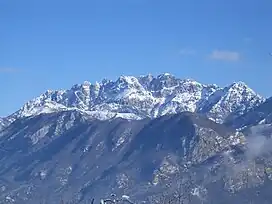 It towers over the city of Lecco and the southern end of Lake Como. The mountain is so named because of its resemblance to a saw (Lombard: résega;[2] Latin: serra) as it has eleven summits of similar height. The highest of these summits, Punta Cermenati, reaches 1,875 m above sea level and towers 1,500m above the valley below.[3] The mountain is popular with both hikers and climbers[4] with many maintained paths and Via ferratas as well as much opportunity for rock climbing on the south and west walls of the northern summits.