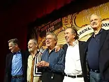 Monty Python were the inaugural recipients of the Empire Inspiration Award in 1997. Palin, Jones and Gilliam received the award on stage in London from Elton John while Cleese and Idle appeared via satellite from Los Angeles.[99] In 1998 during the US Comedy Arts Festival, where the troupe were awarded the AFI Star Award by the American Film Institute, the five remaining members, along with what was purported to be Chapman's ashes, were reunited on stage for the first time in 18 years.[100] The occasion was in the form of an interview called Monty Python Live at Aspen, (hosted by Robert Klein, with an appearance by Eddie Izzard) in which the team looked back at some of their work and performed a few new sketches. On 9 October 1999, to commemorate 30 years since the first Flying Circus television broadcast, BBC2 devoted an evening to Python programmes, including a documentary charting the history of the team, interspersed with new sketches by the Monty Python team filmed especially for the event.[90]