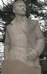Installed in 1968. Authors: sculptor - B.A. Tulekov, architect - T.K. Basenov. The monument-bust is cast in bronze. The height is 2 meters, the pedestal is rectangular and made of gray granite.[38] | |