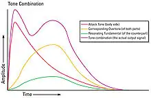 | Bridge position | Colour codes | Attack tone : open string[4] | Resonating fundamental of the counterpart:[4] open string | Corresponding overtone