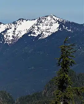 The history of the formation of the Cascade Mountains dates back millions of years ago to the late Eocene Epoch.[7] During the Pleistocene period dating back over two million years ago, glaciation advancing and retreating repeatedly scoured the landscape leaving deposits of rock debris.[7] The last glacial retreat in the area began about 14,000 years ago and was north of the Canada–US border by 10,000 years ago.[7] The U-shaped cross section of the river valleys are a result of that recent glaciation. Uplift and faulting in combination with glaciation have been the dominant processes which have created the tall peaks and deep valleys of the Cascade Range.