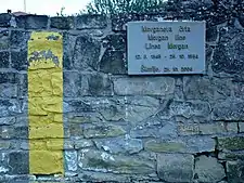 Memorial plaque to the Morgan line in Spodnje Škofije, Slovenia. In Istria, the line served as the border between Zone A and Zone B of the Free Territory of Trieste between 1947 and 1954. Today, almost all of the former Morgan Line lies within Slovenian territory.