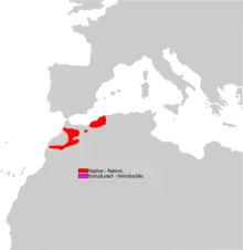 The Moroccan rock lizard occurs in northwestern Africa, mainly in the mountain of Morocco but also down to sea level in Algeria. It was first recorded in Minorca in 1928.[2]