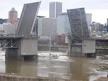 The Morrison Bridge is a bascule bridge that spans the Willamette River in Portland, Oregon. Completed in 1958, it is the third bridge at approximately the same site to carry that name.[2] It is one of the most heavily used bridges in Portland.[3] It was added to the National Register of Historic Places in November 2012.[1][4]