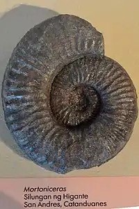Mortoniceras is an ammonoid genus belonging to the superfamily Acanthocerataceae, named by Meek in 1876, based on Ammonites vespertinu, named by Morton in 1834.