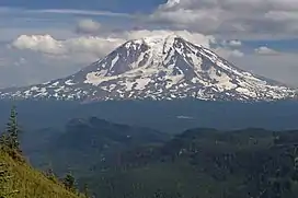 Mount Adams, known by some Native American tribes as Pahto or Klickitat,[4] is a potentially active stratovolcano in the Cascade Range.[5] Although Adams has not erupted in more than 1,000 years, it is not considered extinct. It is the second-highest mountain in Washington, after Mount Rainier.[6]