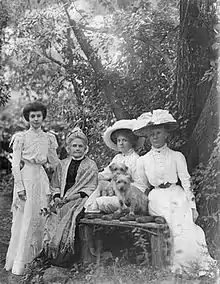 The newspaper proprietor, David Syme, built 'Rosenheim' on 24 hectares in 1869. It was acquired in 1886 for successive Victoria Governors.[8] The state parliament approved funds of £12,000 to purchase a Government house[9] near the top of Mount Macedon as the location of the official summer residence of the Governor of Victoria in the late 1880s.[10] It was renovated in 1892.[11] By the 1930s the residence was commonly referred to as Government Cottage.[12] The residence was described in 1933 as an "estate consists of slightly more than 54 acres at Upper Macedon, two and a half miles from the Macedon railway station. There is a two-storied wooden building of 31 rooms, besides four bathrooms and six storerooms, as well as six detached rooms for servants' quarters, an entrance lodge containing, four rooms and stabling and garage."