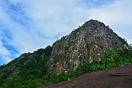 Located between the two main arms of the Jatiluhur Reservoir, this andesite mountain of volcanic rock shows three distinct peaks stretching some 1.5 km from north to south, the highest of which is 963m above sea-level. Its 600m cliffs, offering hard rock and scant holds, make it a popular venue for recreational rock climbers.