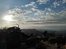 Mount Scott is the second-highest mountain in the Wichita Mountains Wildlife Refuge, but it remains the most well-known and regularly visited. The 3+ mile paved road that winds from the base to the top of Mount Scott offers breath-taking views of the surrounding Oklahoma plains. Mount Pinchot lies several miles to the west and is the highest point in the Refuge being 12 feet taller. Mount Pinchot is located within the Wildlife Refuge's Special Use Area which is reserved for wildlife management and closed to the public.[4] From the west side of Mount Scott can be seen several prominent mountains to the west including Elk Mountain, Mount Sheridan, and Haley peak which lies just outside the NW corner of the WMWR.[6][7][8] Haley Peak (officially unnamed) is the highest point in the Wichita Mountain range.[9]