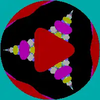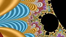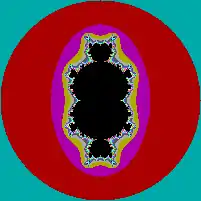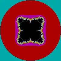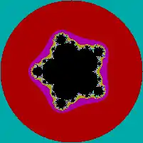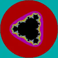 In mathematics, a Multibrot set is the set of values in the complex plane whose absolute value remains below some finite value throughout iterations by a member of the general monic univariate polynomial family of recursions.[1][2][3] The name is a portmanteau of multiple and Mandelbrot set. The same can be applied to the Julia set, this being called Multijulia set.