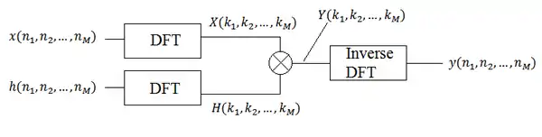 The premise behind the circular convolution approach on multidimensional signals is to develop a relation between the Convolution theorem and the Discrete Fourier transform (DFT) that can be used to calculate the convolution between two finite-extent, discrete-valued signals.[7]