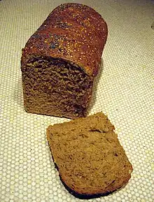 Multigrain bread is a type of bread prepared with two or more types of grain.[1] Grains used include barley, flax, millet, oats, wheat, and whole-wheat flour,[2][3] among others. Some varieties include edible seeds in their preparation,[4] such as flaxseed, quinoa, pumpkin seeds, and sunflower seeds.[3][5] Rye and sourdough multigrain breads are additional varieties.[4][6][7] Preparations include 7-grain and 9-grain bread,[8] among others.