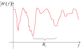 The obtained channel transfer characteristic has a typical appearance of a sequence of peaks and valleys (also called notches); it can be shown that, on average, the distance (in Hz) between two consecutive valleys (or two consecutive peaks), is roughly inversely proportional to the multipath time. The so-called coherence bandwidth is thus defined as