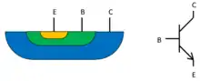 cross section and symbol of a simple NPN bipolar transistor