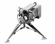 In 1981, Simulaser Corporation was founded by two entrepreneur engineers and began operations near Los Angeles to develop "Advanced MILES" training systems.[3] Under initial contracts from Sandia National Labs, Simulaser produced standard MILES replacement laser transmitters and man-worn detector systems as well as "Advanced MILES" devices that incorporated player identification and scoring systems. These Advanced MILES systems made use of the CMOS 146800-series embedded controllers that had just become available at that time. The systems interleaved unique player identification codes within the weapon code bits transmitted by the laser, which were then stored by the receiver system of any player that was hit.[4] Those systems utilized a controller gun to initialize each player, thus preventing players from "resurrecting" themselves by re-inserting the yellow weapon key. Each player's data was stored in memory until downloaded by the controller unit at the conclusion of the training exercise. Simulaser made use of hybrid microcircuits to reduce the size of certain components and eliminated the electronic module on the back of the helmet to improve player comfort. Simulaser also manufactured laser detector components and systems for vehicle applications sold to Sandia Labs and EG&G Inc., the operations and maintenance contractor at Kirtland AFB for use in training guards and couriers. Simulaser was acquired by Applied Solar Energy Corp. (ASEC, City of Industry, CA), its major supplier of silicon detectors, in 1984.[5] Later, under contract from Fairchild-Weston Systems, Simulaser produced the laser and detector systems for the AGES/ADII (Air-to-Ground Engagement System/Air Defense II) program for the US Army, outfitting a number of helicopters with training systems and producing laser simulators for the HGSS/GVLLD (Hellfire Ground Support System Simulator/Ground-based Vehicle Laser Locator Designator).