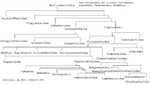 ![]() Multituberculate phylogenetic tree[27] Based on the combined works of Mikko's Phylogeny Archive[28] and Paleofile.com. Suborder †Plagiaulacida Simpson 1925