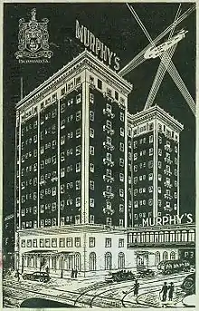 The original hotel was built in 1872 by John Murphy, an Irish immigrant, and former Confederate soldier.[1] He renovated his oyster shack by opening multiple rooms above it, giving birth to the Murphy Hotel.[1] In 1886, all new buildings and an elevated walkway over 8th Street were completed.[1]