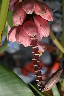 Musa ornata, the flowering banana,[2] is one of more than 50 species of banana in the genus Musa of the family Musaceae. Most of these species are large tropical evergreen perennials, mainly from lowland areas with high temperature and humidity. Musa ornata originated in southeast Asia,[3] and is cultivated for its commercial and ornamental value.[4] The fruit is attractive but tends to be inedible.[5]