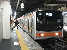 The Musashino (むさしの) is an all-stations train service in Japan operated by the East Japan Railway Company (JR East) in Tokyo between Hachiōji on the Chuo Line or Fuchū-Hommachi on the Musashino Line and Ōmiya in Saitama Prefecture.[1] It avoids passengers having to change trains at Minami-Urawa or Musashi-Urawa to access the western portion of the Musashino line to/from Ōmiya. This train only operates a few services in the morning and evening peaks each day. Shimōsa is a similar service linking Ōmiya and the eastern side of the Musashino Line. The trains terminate at Fuchū-Hommachi, Ōmiya and Hachiōji. The trains from Hachiōji travel on the Chuo Line. After Kunitachi station, trains will go through a cargo branch. After stopping at Shin-Kodaira, the train uses the Musashino Line. After Kita-Asaka station, the train goes by special freight non-stop tracks. After passing Nishi-Urawa station, the train turns to Ōmiya arriving trucks. Trains usually stop on Platforms 3 and 4 at Ōmiya station.