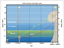 A higher-yield detonation can carry the nitrogen oxides from the burst high enough in atmosphere to cause significant depletion of the ozone layer.