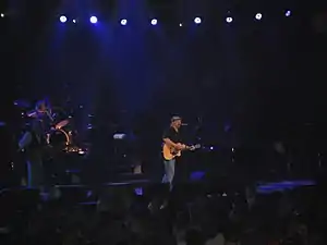 A thriving local hip hop scene developed with club parties at St. Andrew's Hall on Friday evenings and the following day, at the clothing store the Hip Hop Shop, emcee Proof hosted rap battles showcasing the skills of young, developing rap talents.[49] The Hip Hop Shop opened in 1993 and closed in 1997, before reopening under new management in 2005, where it stayed in business until 2014, when the store shut down again.[51] Not all Detroit rappers, however, developed their careers out of this battle rap scene, as Esham, Kid Rock and Insane Clown Posse all developed their own paths to success, before the Hip Hop Shop had even opened.[50][52][53][54] The Hip Hop Shop scene did, however, help a young Eminem develop his lyrical skills and flow. As M&M, he appeared on Bassmint Productions' single "Steppin' On To The Scene" in 1990. Two years later, he appeared in an acting performance in the music video for Champtown's single "Do-Da-Dippity".[49] The same year, Champtown, Chaos Kid and Eminem formed the group Soul Intent, releasing "What Color Is Soul" in 1992, followed by "Biterphobia" and "Fuckin' Backstabber" in 1995, the latter of which featured an appearance from rapper Proof.[49] Champtown released the album Check It the following year, in the same year Eminem released his debut album Infinite.[49] After being discovered by Jimmy Iovine and Dr. Dre, Eminem would go on to achieve mainstream success with The Slim Shady LP in 1999, which was certified 5x platinum.[55][56] Credited with popularizing hip hop in middle America, Eminem is critically acclaimed as one of the greatest rappers of all time.[48] Eminem's global success and acclaimed works are widely regarded as having broken racial barriers for the acceptance of white rappers in popular music, as well as helping launch the nationally successful careers of other Detroit rappers, including Hush, Proof, Obie Trice and Trick Trick, and forming the groups D12, and Bad Meets Evil, the latter of which featured fellow Detroit rapper Royce da 5'9".[49][57]