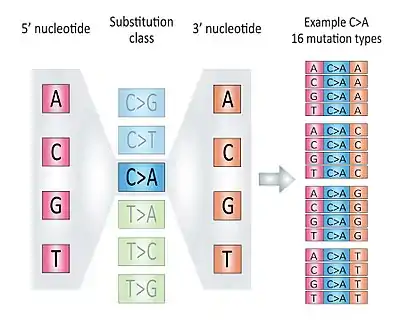 Signature 5 has a predominance of T>C substitutions in the ApTpN trinucleotide context with transcriptional strand bias.[6]
